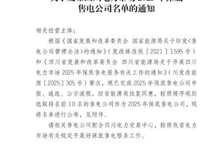 川投售電入選四川電力市場(chǎng)2025年保底售電公司